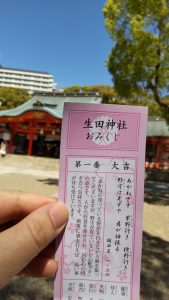 今日送ってきてくれた方の生田神社の大吉