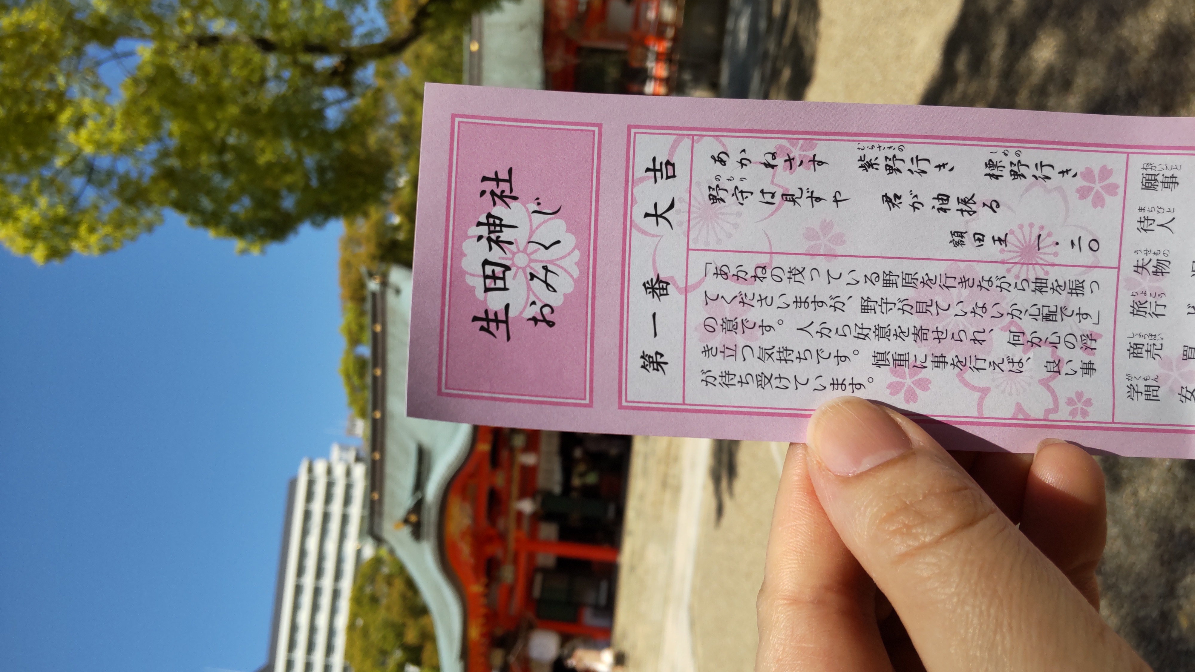 昨日ブログにあげた大吉おみくじのこと。