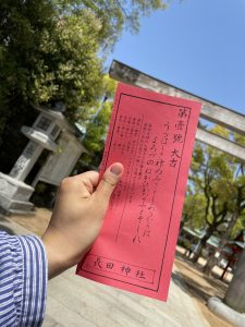 ブログに掲載されてたお客様の感想で神社でのおみくじが1番の大吉だった